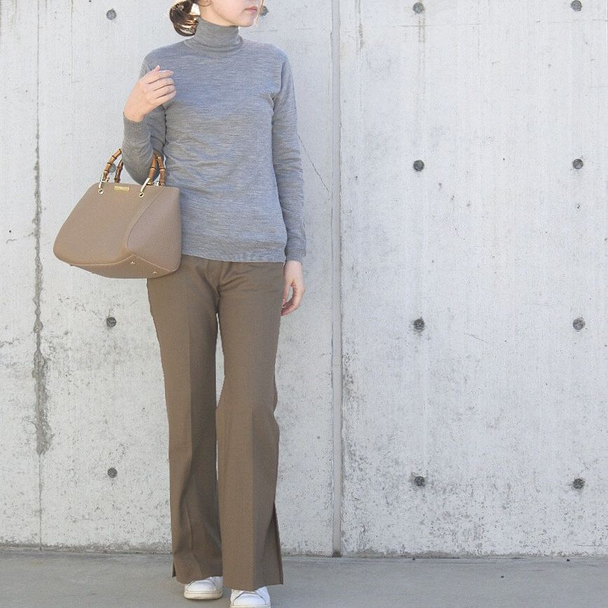 タートルネックは老けて見えそう….コンサバに見えそう….と敬遠している方、ローゲージタートルは1枚で圧倒的に着映え力がありますよ!ぜひ参考にしてみてくださいね!
