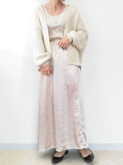 「サテンスカート」でオールホワイト!40代はどう着るのが正解?