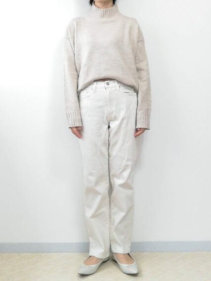 蛍光っぽい明るめのホワイトデニム。冬にはまぶしく見えて、春夏っぽく寒々しい印象かもしれません。