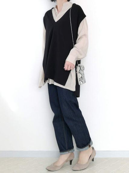 OKコーデその2…インしない派なら「ベスト」を足すと一気におしゃれに!