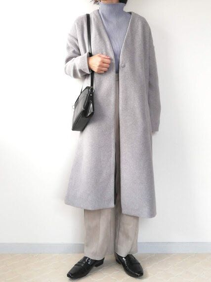 全身定番カラーでまとめた、冬のアウタースタイルがこちら。どこにも遊びがない定番カラーオンリーだと、40代は「地味」を通り越して「老け見え」につながる可能性大!