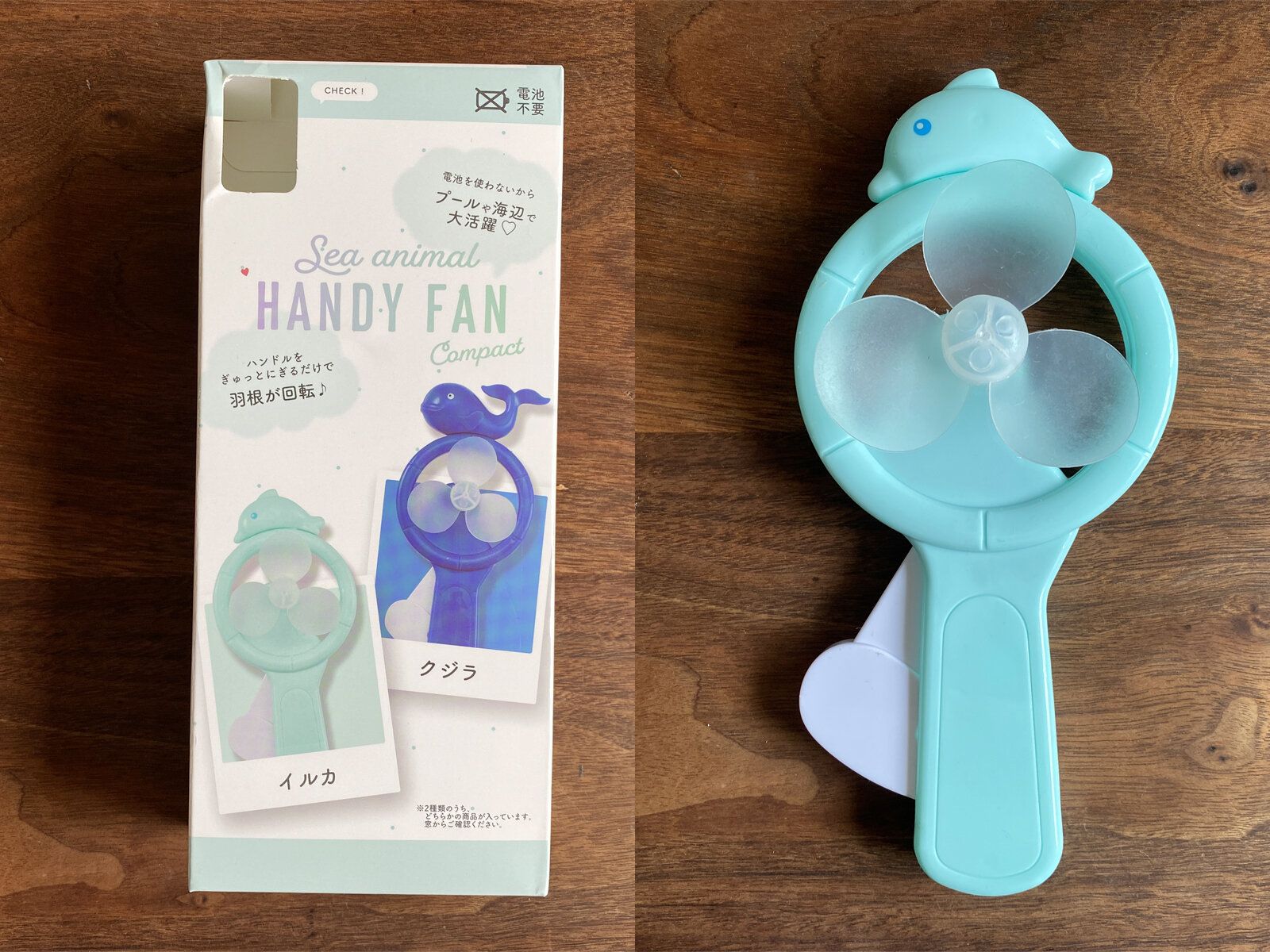 100円ショップには電池式の自動ミニ扇風機もありますが、電池を直射日光の当たる場所や炎天下の車内などの高温の状態で置きっぱなしにすると、液漏れや発熱などの危険があります。その点、手動であれば安心。プールや海辺など水場でも使うことができます。
