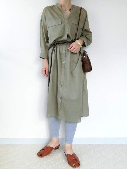 ワンピースとして1枚で着用。レギンスとのレイヤードはもはや定番ですが、新しさがなく古くさい印象を与えてしまうかも?