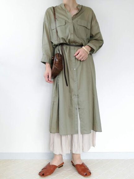 ノースリーブワンピースに羽織って、ロング×ロングのレイヤードで、今っぽくこなれた着こなしが完成!まだ暑い時期は、袖をまくった着こなしがイチオシ。おしゃれ度と涼しさが同時にアップしますよ。