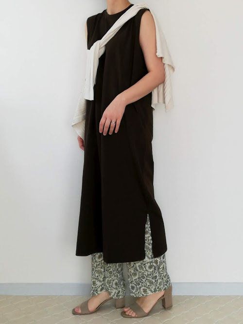 シャツワンピースのインナーに。長すぎないロング丈で、インナーとしても使いやすく◎。ノースリーブなので重ね着しやすいのもうれしいポイント。