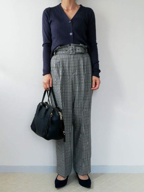 チェックのセンタープレスパンツに合わせることで、よりきちんと感あるコーデに仕上がります。