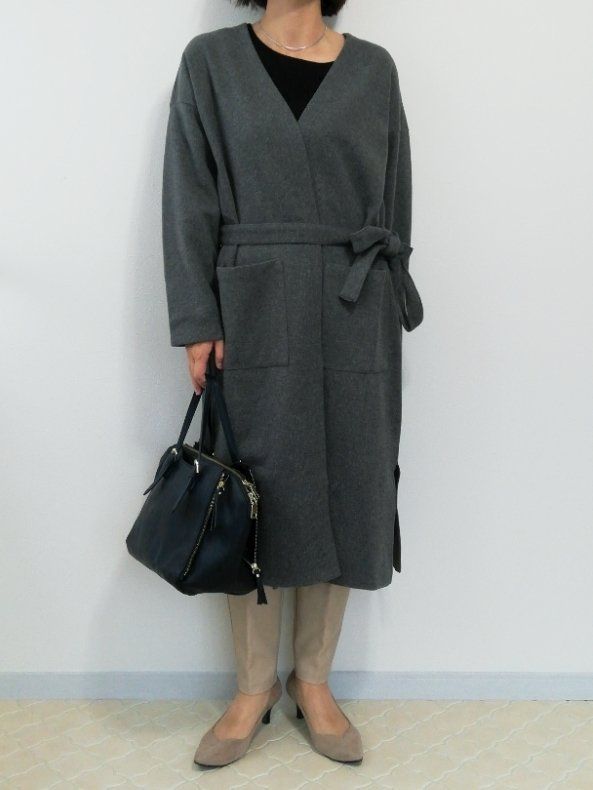 前を開けて着ると、ゆるっと感が出てしまうのでカジュアル度強めの印象に。