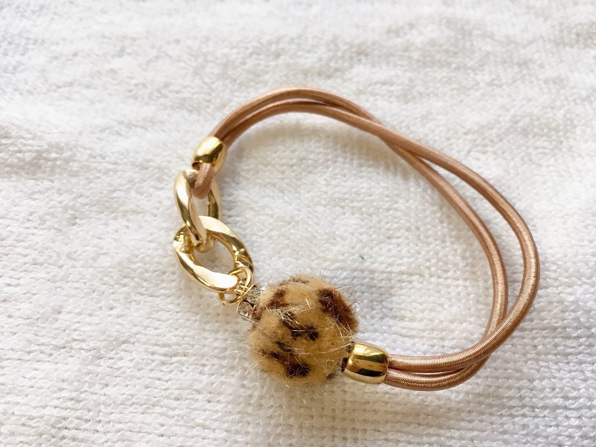 ヘアゴムもたくさん種類がありますが、こちらの商品は一見するとブレスレットと見間違えそうなオシャレさが印象的。ヒョウ柄は最近のトレンドなので、さりげなく取り入れたいかたにピッタリですね。