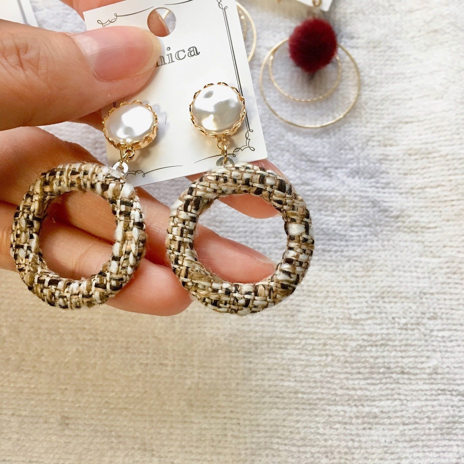 耳元からあったかく!?ツイード素材のピアス