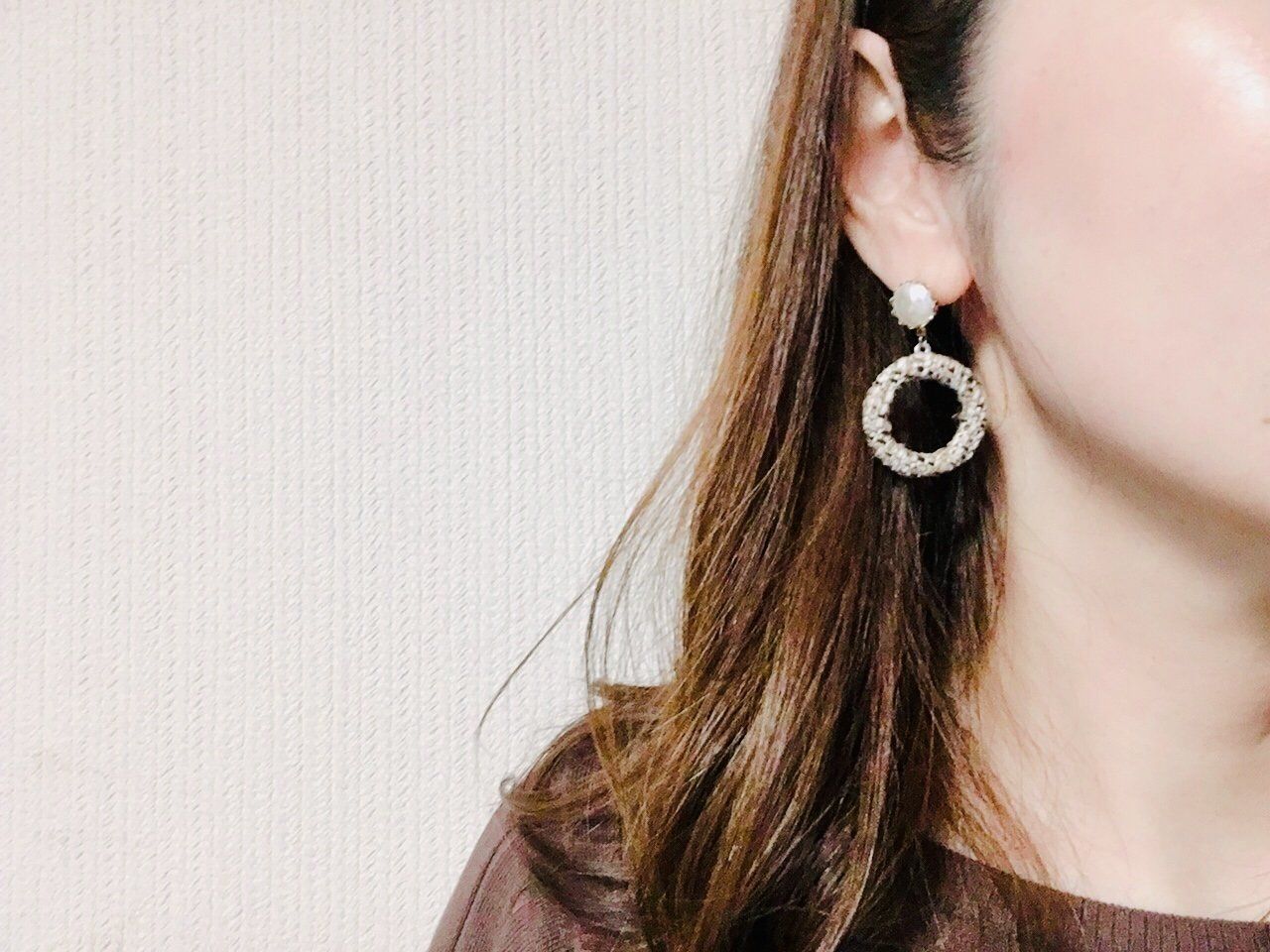 冬にぴったりな、あったかい雰囲気が印象的なツイード素材のピアス(イヤリングもあり)。落ち着いた色合いなので、どんな年代のかたでも取り入れやすいアイテムです。丸いデザインだとかわいらしさもアップしますね。