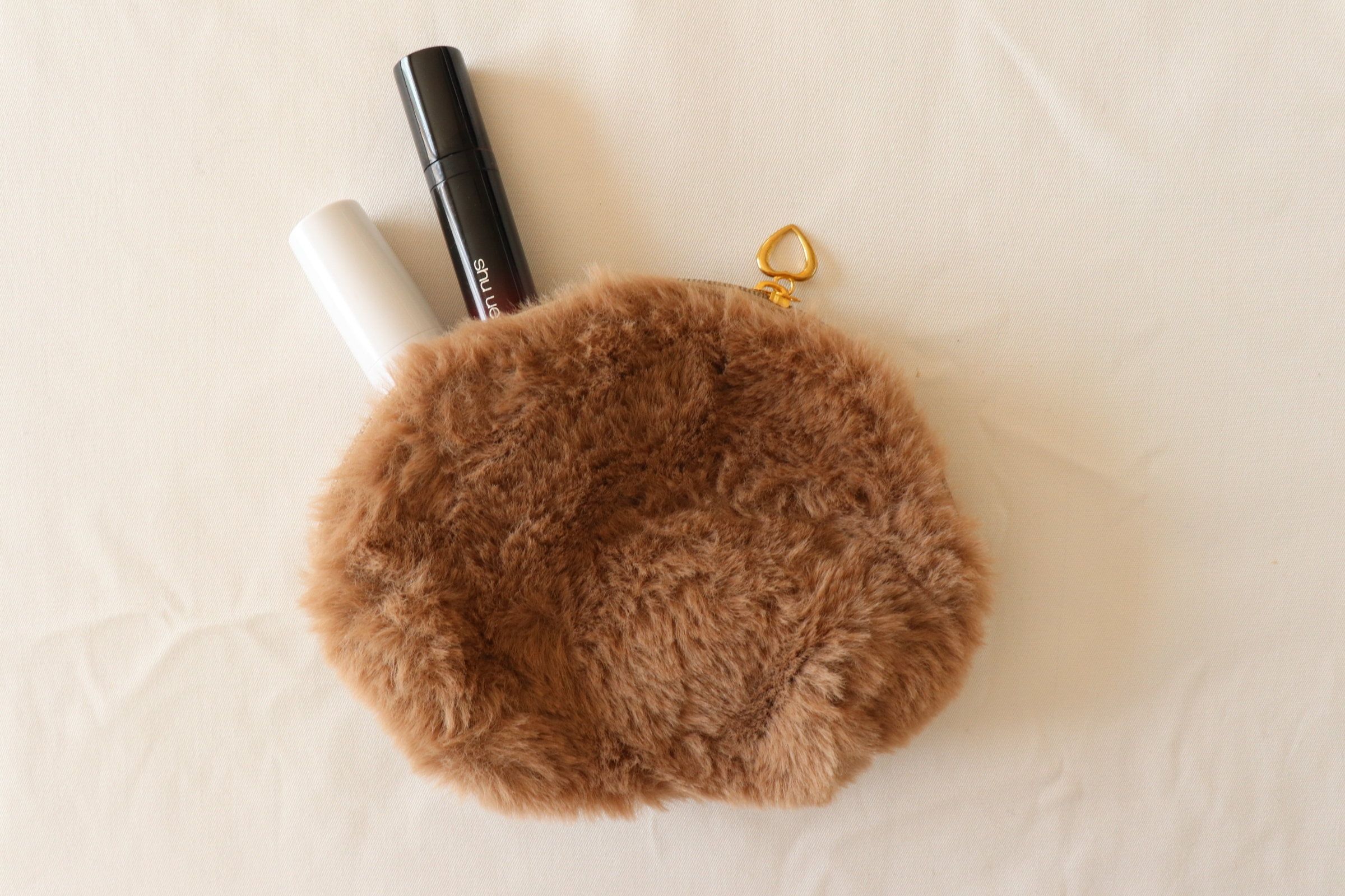 おすすめ3:バックの中も冬仕様に。ナチュラルボアポーチ