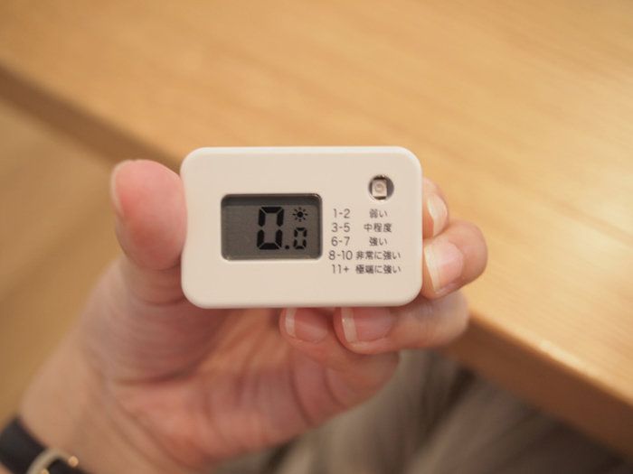こちらはタグツールシリーズのUVチェッカー。ボタンを押しつづけると、簡易的なUVVインデックス値を表示してくれますよ。「日差しが気になる時など紫外線対策の目安にお使いください。」との公式の説明。