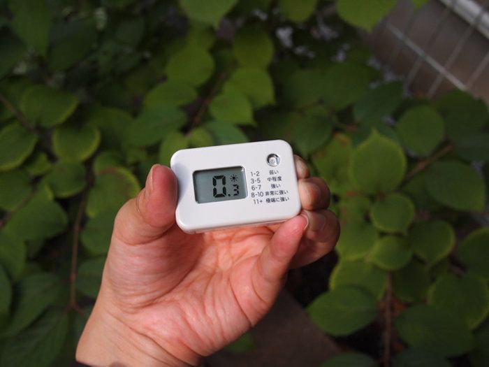 室内で使うと0.0表示だったのに、屋外で使ってみると確かに紫外線の数値を表示しました!0.2〜3.0までの数値をうろうろしていたUVチェッカー。この日の紫外線はあまり強くなさそうです。こんな風に紫外線の目安を数値で知ることができます。