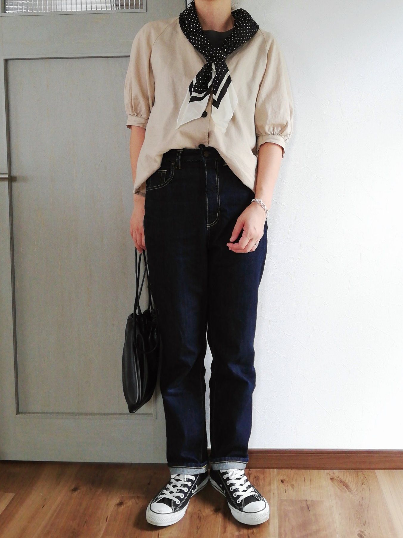 夏のアクセサリーでおすすめしたいのがブレスレット。華奢なシルバーのものは、どんなコーデにも馴染んでくれます。デニム×スニーカーのカジュアルコーデに取り入れて、大人らしさをひとさじプラス。