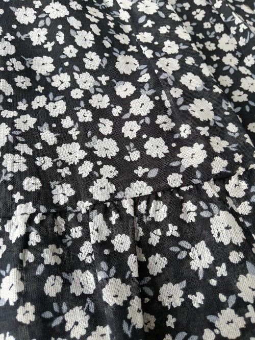 生地アップ。寒色系の小花柄と涼し気な素材感がこれからの季節にぴったりです。