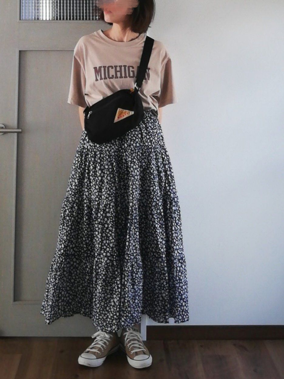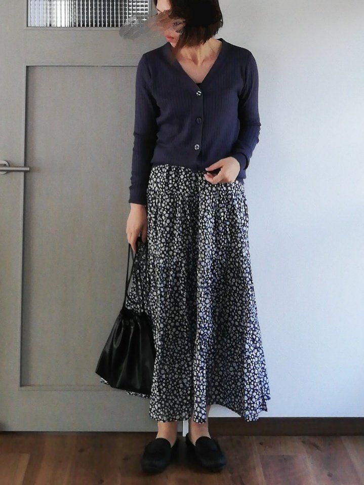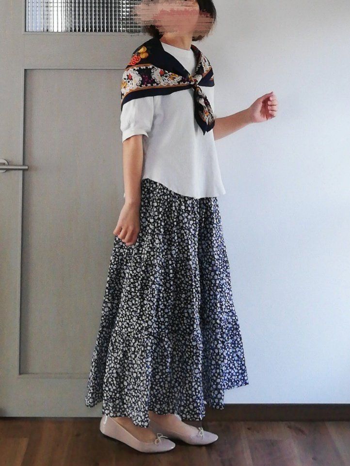 GU「ティアードフレアロングスカート」はシックな花柄が大人女子におすすめ!