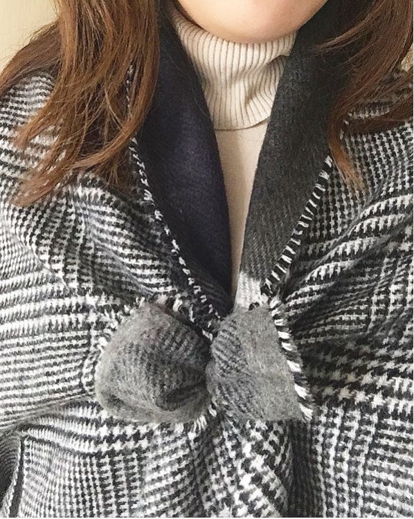 また、すでにお気づきの方もいらっしゃると思いますが、このマルチストール、実はチェック柄とグレンチェック柄のリバーシブルなんです!どちらもこの秋冬の注目柄なので、ファッションアイテムとしてもポイントは高いです。