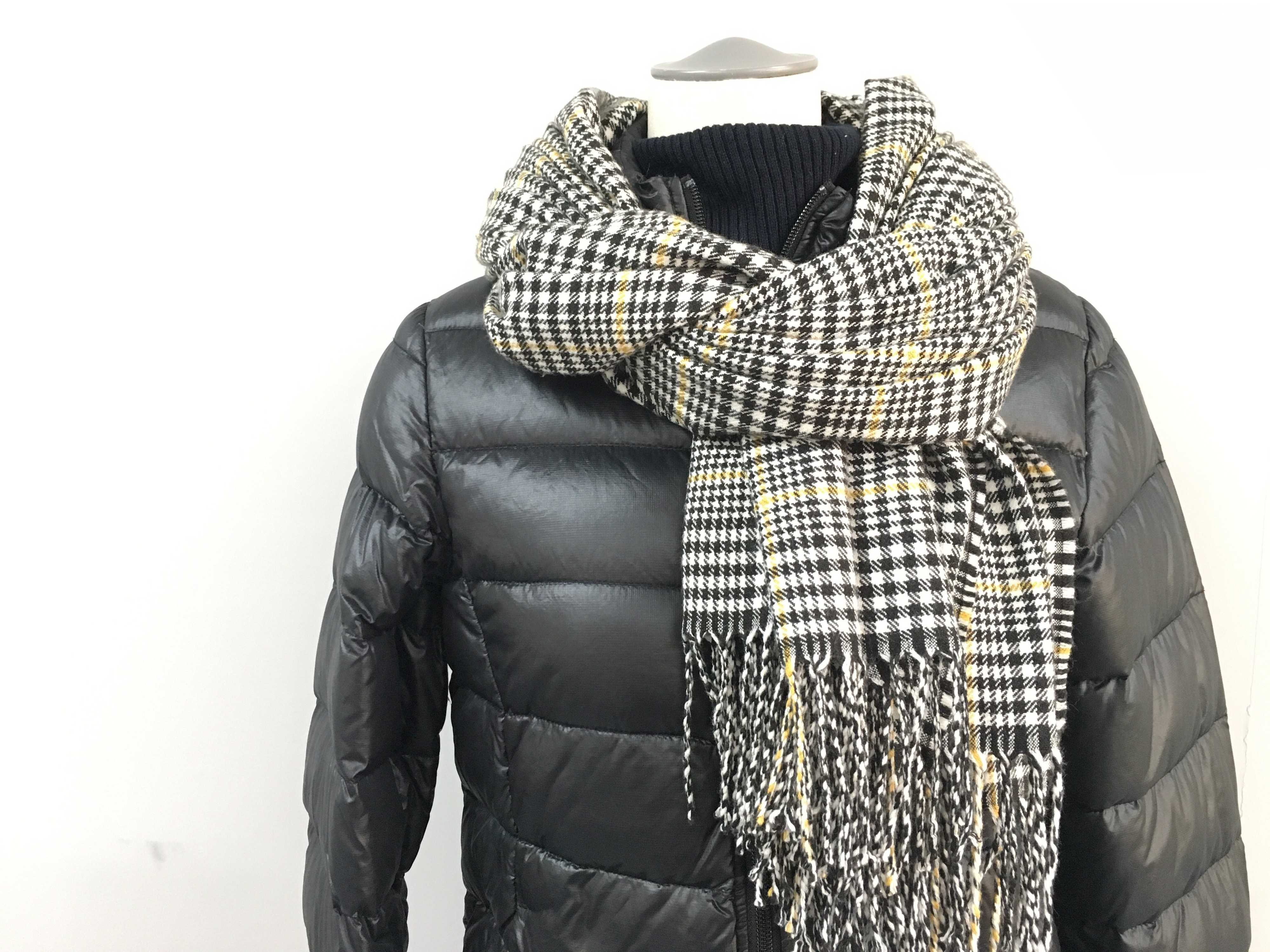 寒い日にダウンやタートルネックニットに合わせてみて下さい。首の近くにコンパクトに巻いているからとても暖かいアレンジになります。