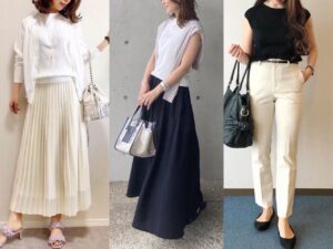 「ワッシャーサテンスカートパンツ」(ナチュラル、ライトオレンジ、ブルー、ブラック・全4色)¥2,990(税込み)/ユニクロ、「ボリュームスリーブブラウス(長袖)」(ブルー、オフホワイト、ネイビー・全3色)¥2,990(税込み)/UNIQLO and JW ANDERSON/ユニクロ そのほか本人私物