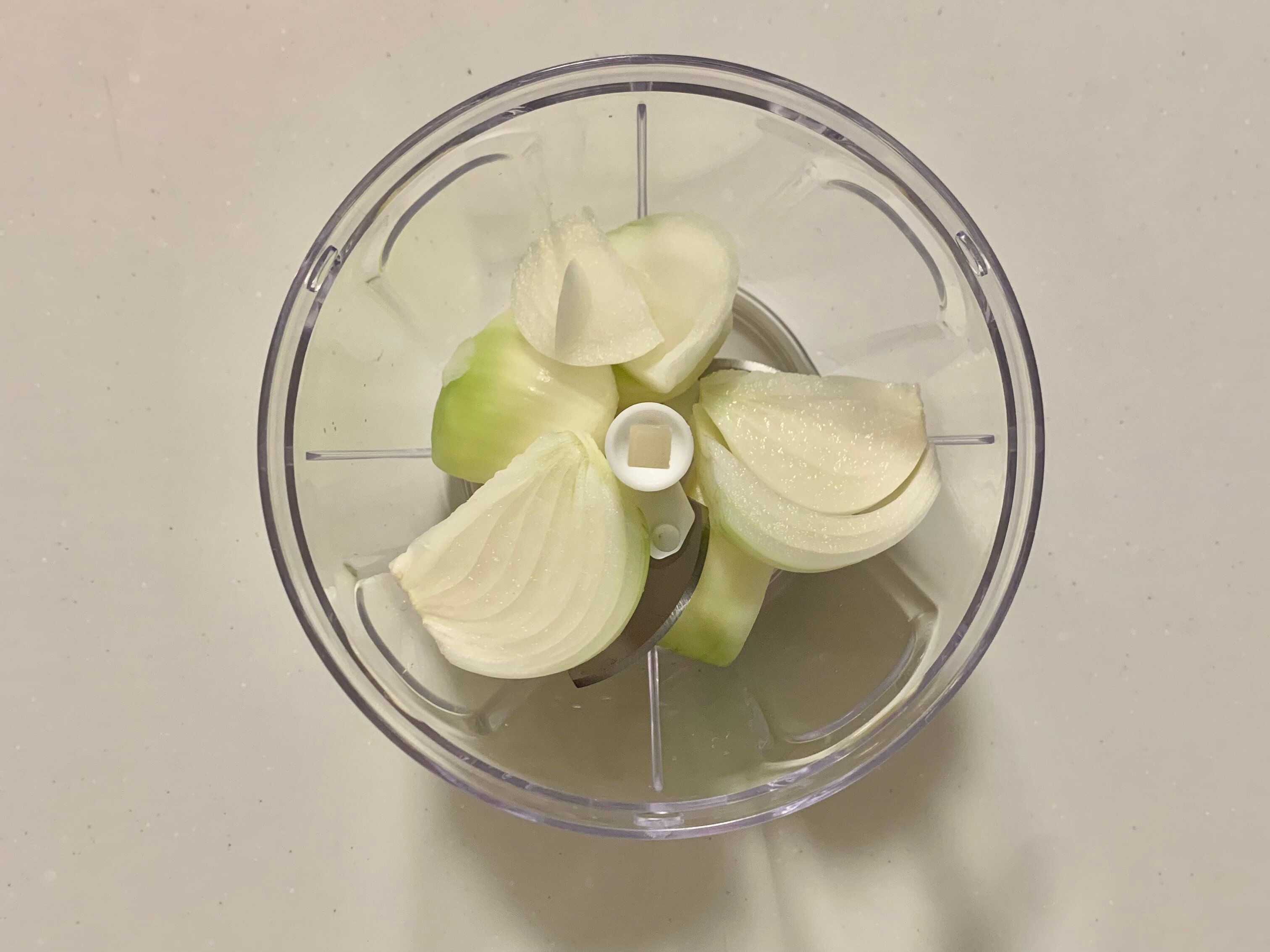 まずは野菜を適当な大きさに切って、ぶんぶんチョッパーの中に入れます。