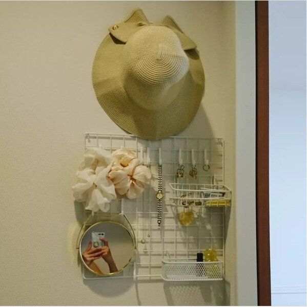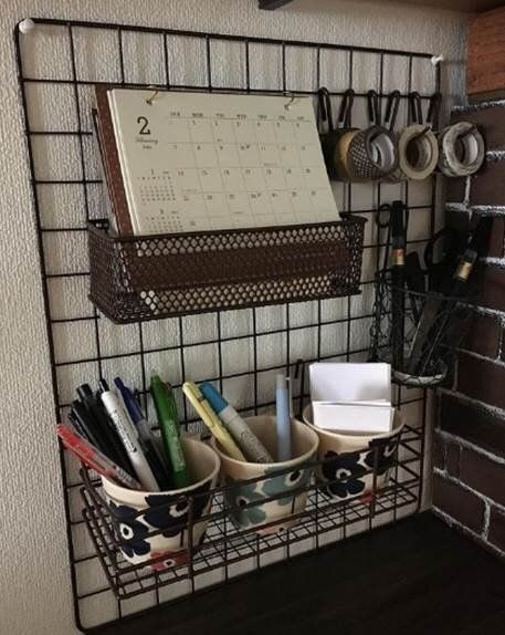 ワイヤーネットは壁に貼って、フックなどをつければそれだけで壁面収納としても活用可能。さまざまなアイデアを見てみましょう。