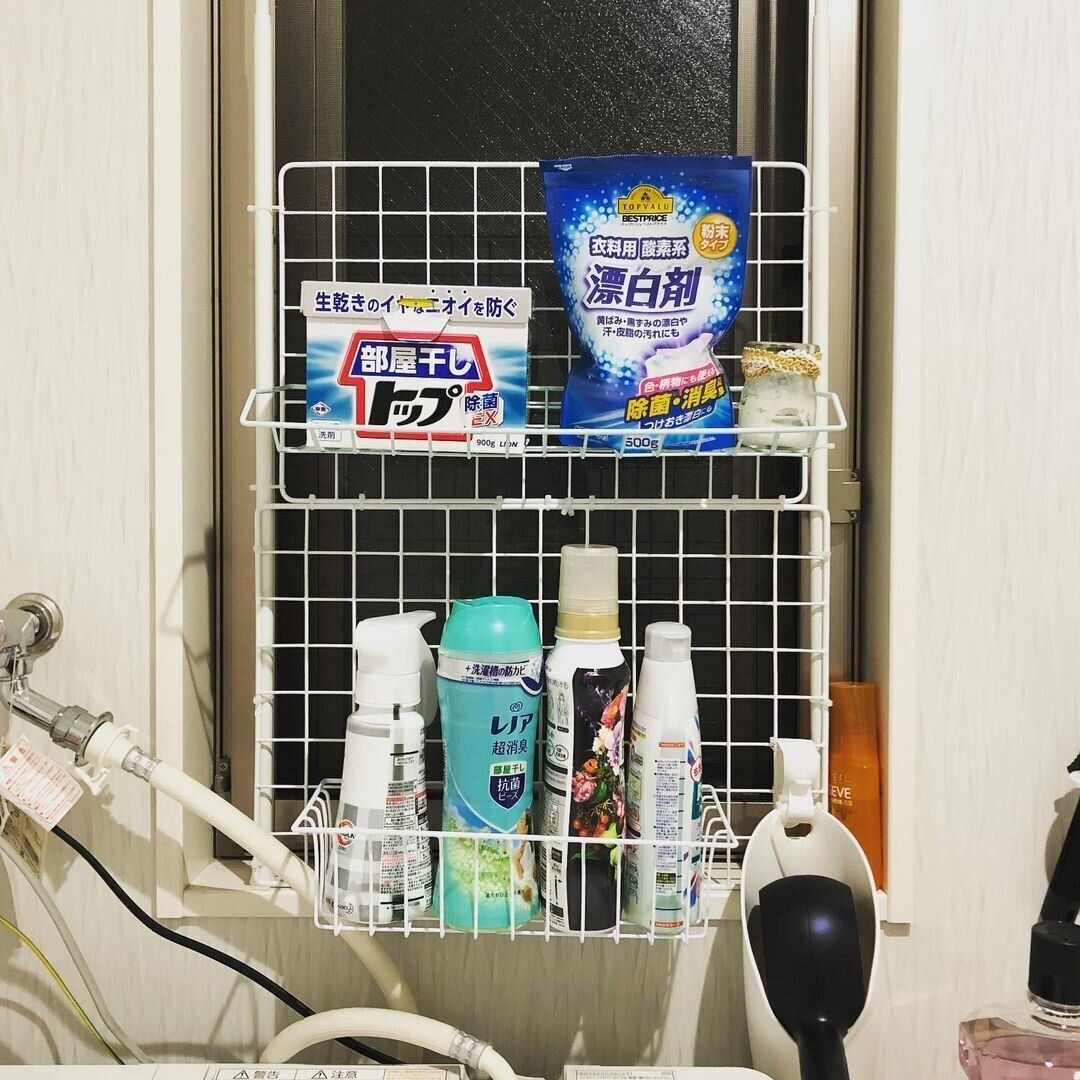 ダイソーのワイヤーネットや、セリアの板などを活用したDIYアイデア。トイレ用品や、トイレットペーパーなどを収納しているそうです。トイレ内の雰囲気にぴったり合っていて、こだわりを感じる装飾もおしゃれです!