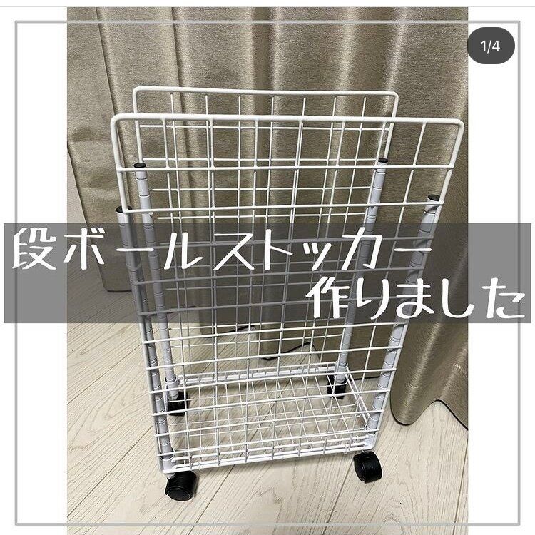 ダイソーのワイヤーネットなどを使った、DIYのダンボールストッカーのアイデアです。これなら見た目もおしゃれで、ダンボールがコンパクトにスッキリ整いそうです。