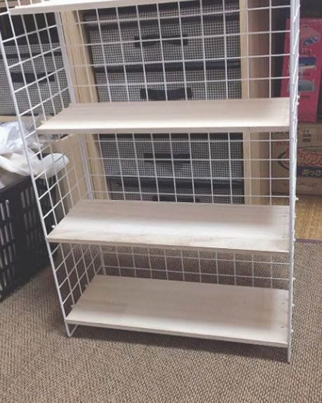 ワイヤーネットと棚板を組み合わせるだけでこんなに素敵な収納棚が完成!棚板の高さも自由に調整できるので使い勝手も抜群です。DIYだからこその自由度の高さですね。