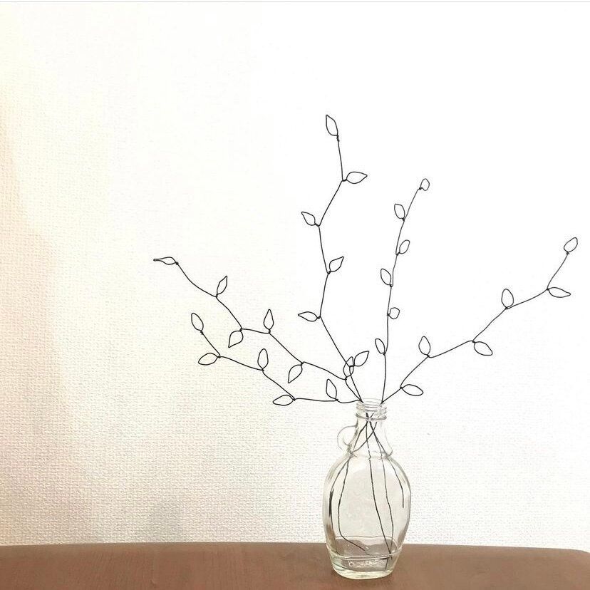 ワイヤークラフトは壁にかけるだけでなく、花瓶に入れるアイデアです。壁にかけたワイヤークラフトと違って立体感が出て、こちらもとってもおしゃれですね。100円ショップのワイヤーでこんなにかわいいインテリアがつくれるのは驚きですね。