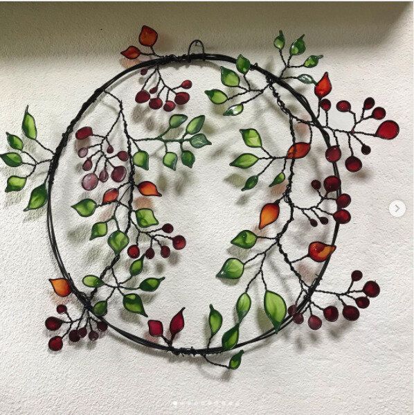 こちらのワイヤーでつくられたリースは「アメリカンフラワー」といってディップ液につける工程を加えることでまるでステンドグラスのように美しいインテリアになる方法です。DIYでこんな作品をつくれたら感動すること間違いなしです。