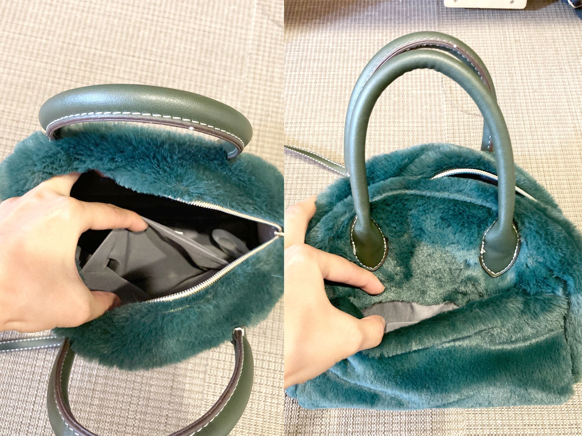 きれいな深緑がワンポイントにもなる2wayファーバッグ