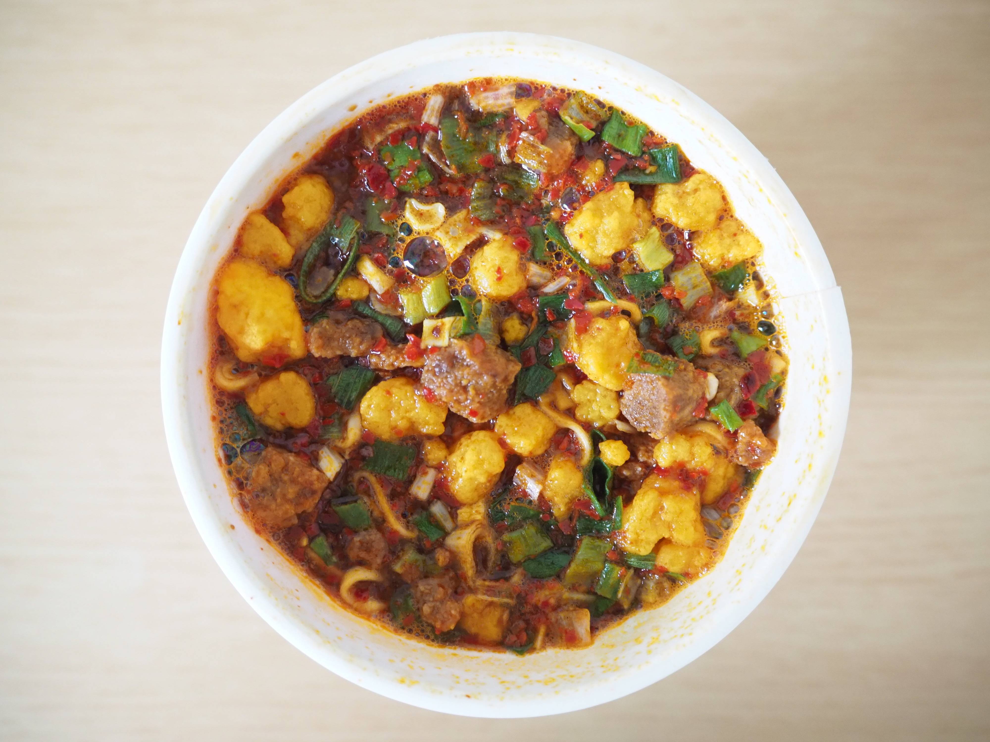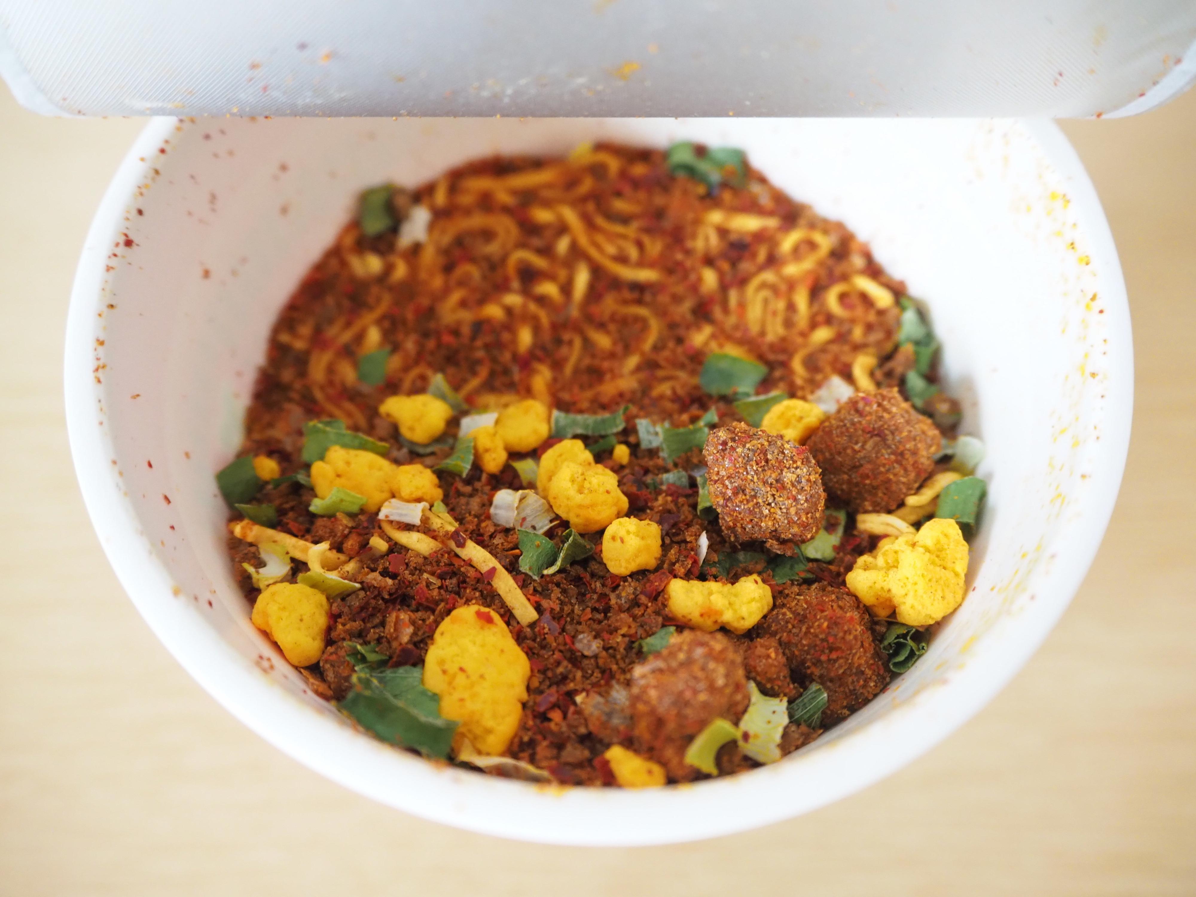 フタを開けただけで辛みのある香りが漂い、食欲を刺激します。