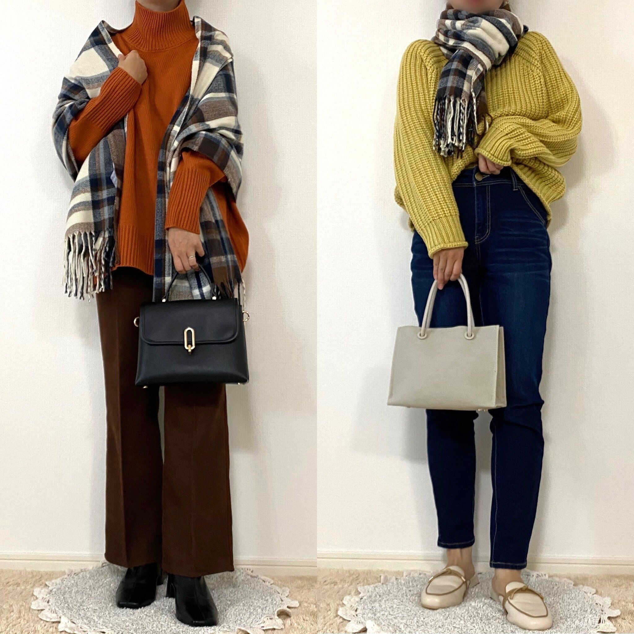 ゆるっとしたニットにボリュームのあるストールを巻いたコーデも、秋冬ならではの可愛らしいシルエットですよね。