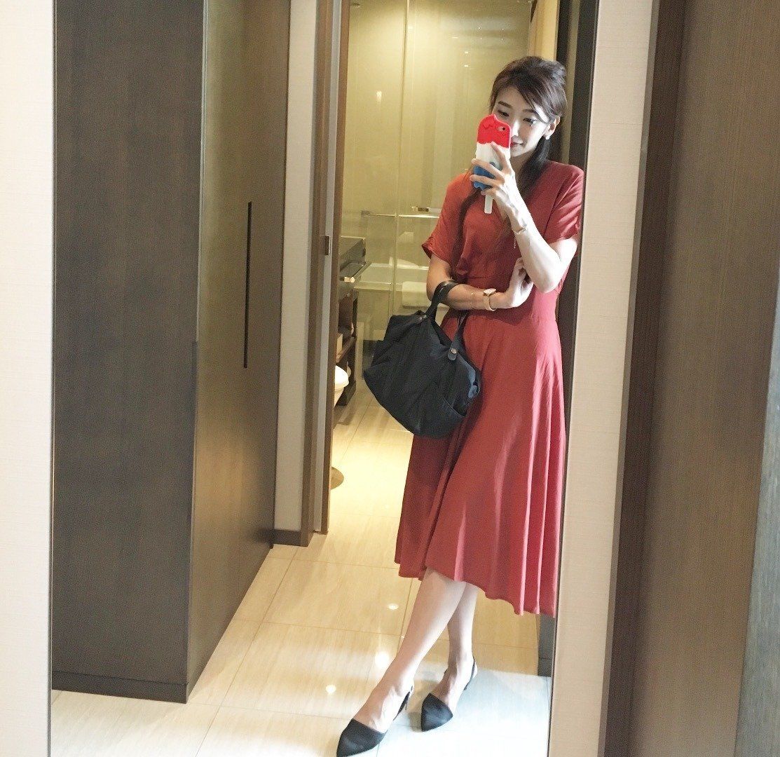 読者モデルの撮影日は、赤のワンピースを主役にしたコーデに。バッグやパンプスは引き締めカラーの黒を選ぶことで、大人っぽくステキな着こなしになっています。バッグはZARA、パンプスはGUと、人気のプチプラブランドも上手に使いこなしているようです。