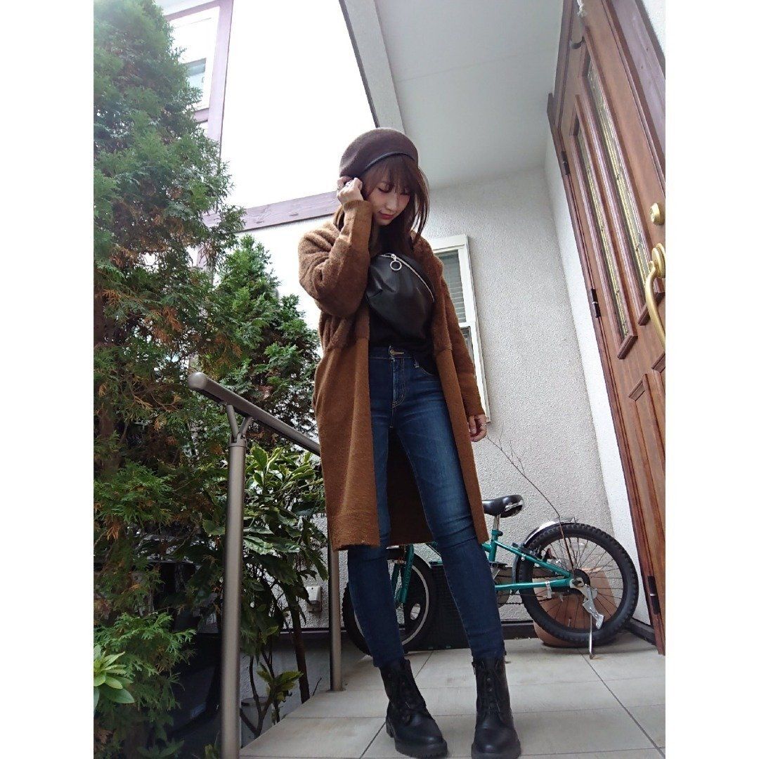 続いてご紹介するのは、デニムパンツにロングカーデをさらりと羽織った広瀬美貴さんのコーデ。バッグやベレー帽などの小物をプラスすることで「ちゃんとコーデした感」が出て、手早くおしゃれに見せられるのだとか。タートルニットとブーツはGUのものだそうで、お買い物上手なところも見習いたいですね。