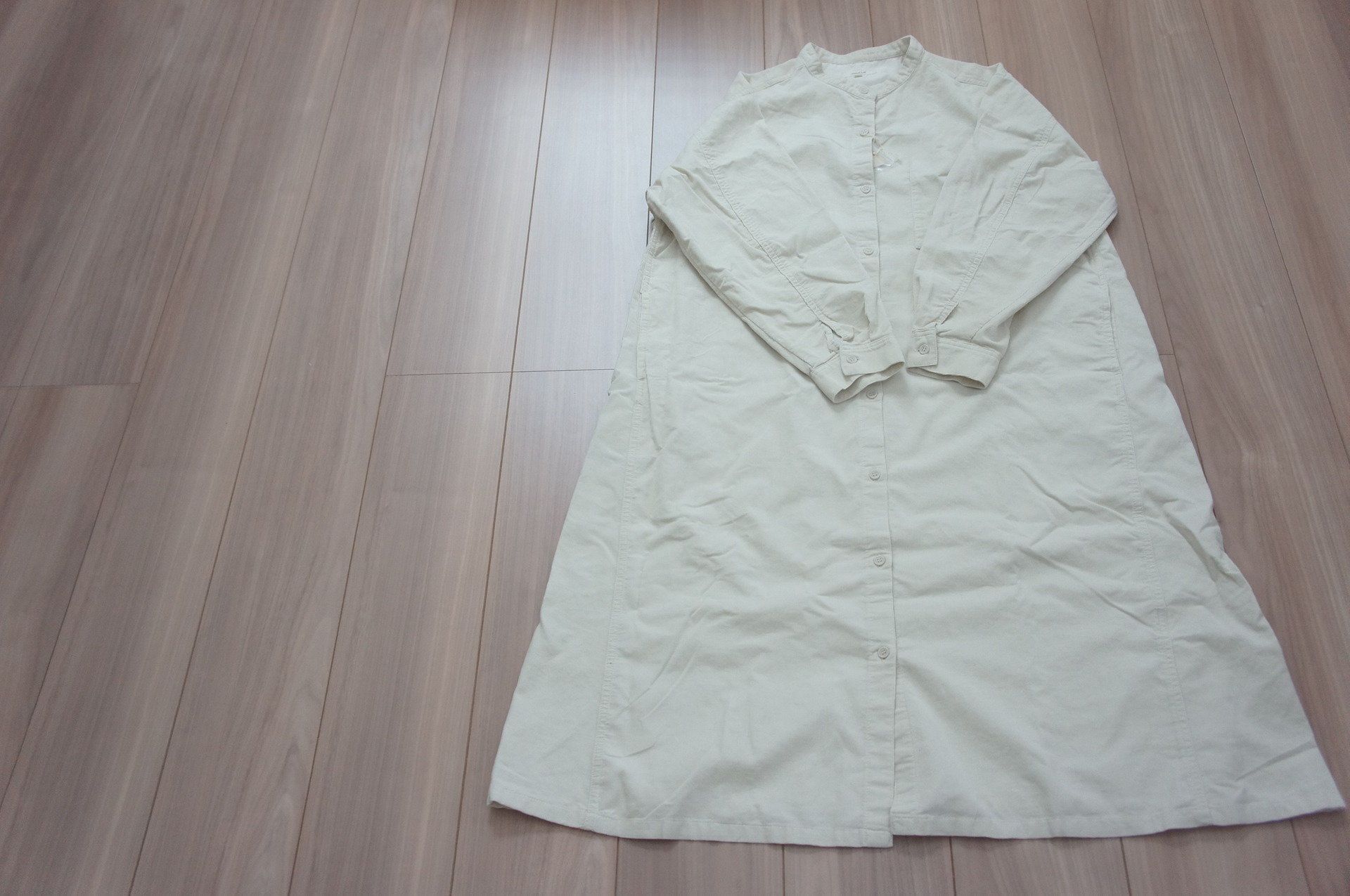 ユッカさんが最近StudioCLIPで購入したのは、アイボリー色のシンプルなシャツワンピース。寒い時期は上にカーディガンを着てもよし、暖かい時期は1枚で着ても羽織ものとして着てもよしと、いろいろな着こなしができる便利な1枚です。顔色が明るく見えるキレイな色合いなので、春先はとくに重宝しそうですね♪