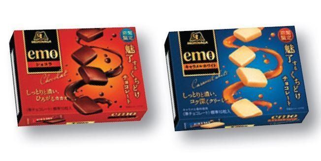「emo<ショコラ>」「emo<キャラメルホワイト>」森永製菓●各¥216