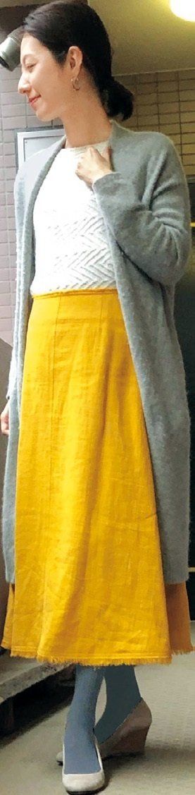 スカートには、タイツで防寒が正解。でも黒タイツはNG。無難なようで強い色なので、春の淡いカラーの中で浮いて見えます。濃いグレーなら悪目立ちせずなじんでおすすめ。