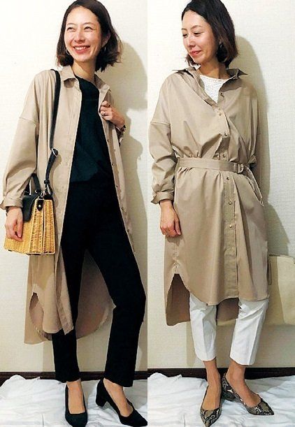 服選びがむずかしい季節の変わり目に1つ買いたすなら、ベーシックカラーのシャツワンピが便利。春は明るい色みと重ね着、秋はダークな色みと重ね着するなど、合わせる服の色を調整すれば、春も秋も着回せるのでクローゼットがスッキリ。