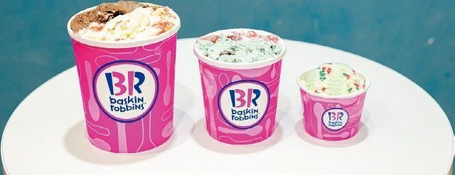 大入りカップに、好きなフレーバー2種類まで詰められるハンドパックというサービス。すべての店舗で実施中。