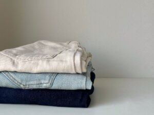 淡いカラーと相性が良いくすみグリーンのニットベストは、白いトップスやグレーのボトムスと合わせるとやわらかく、ラフな印象になります。休日コーデにぴったりですね。