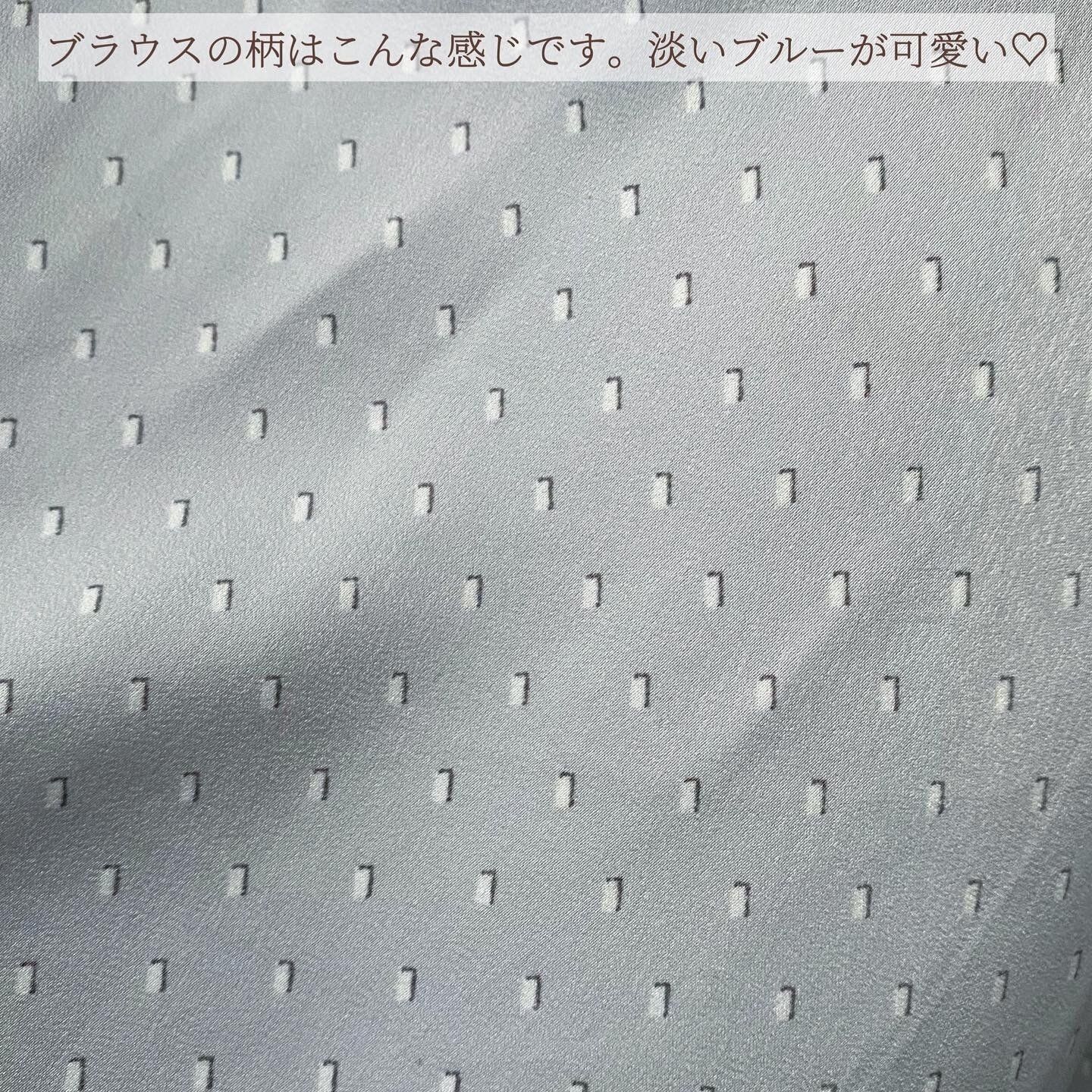 淡いブルー×総柄がお洒落見えするデザインのブラウス。