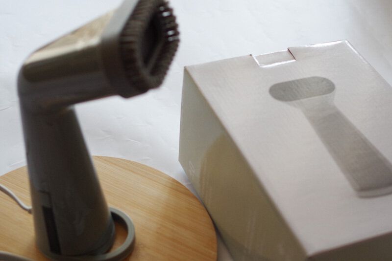 着脱可能なブラシがついています。厚手の素材や、毛足の長い素材をケアするときにブラッシングするように使うこともできるんです。