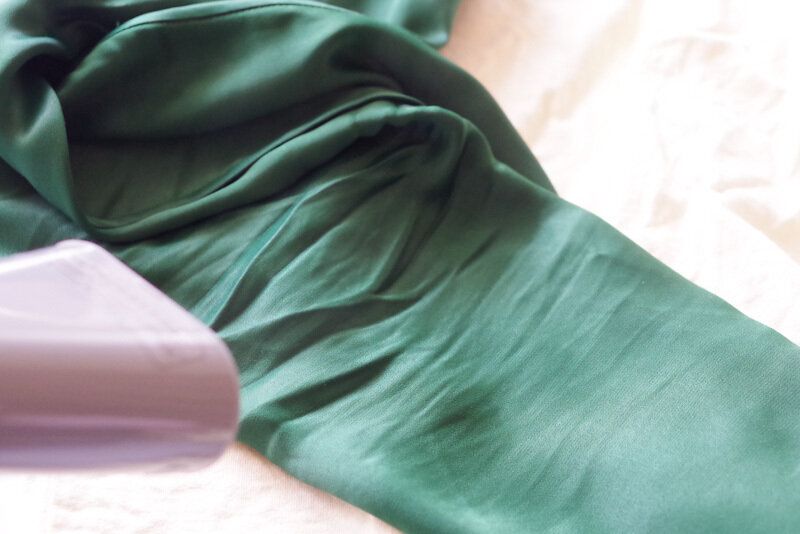 蒸気が見えなくて申し訳ないのですが、細かな蒸気で、サテン素材のお手入れでも大丈夫です。スタイリッシュな見た目が素敵で、スリムで手にフィットする形状もとても使いやすい!