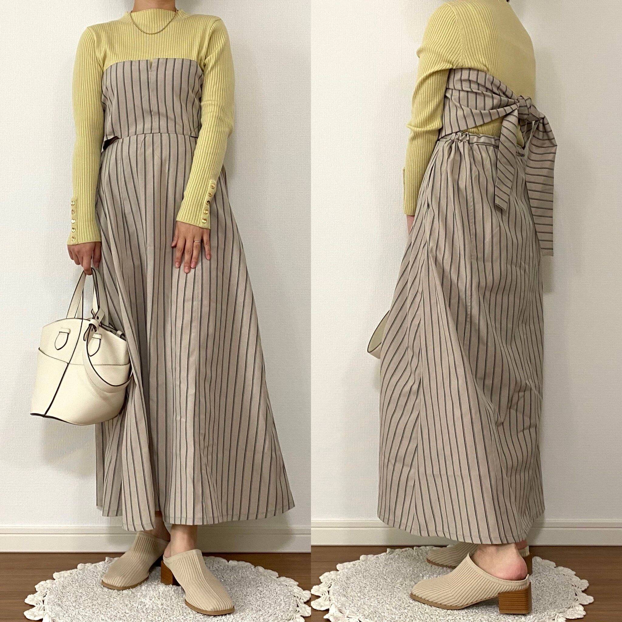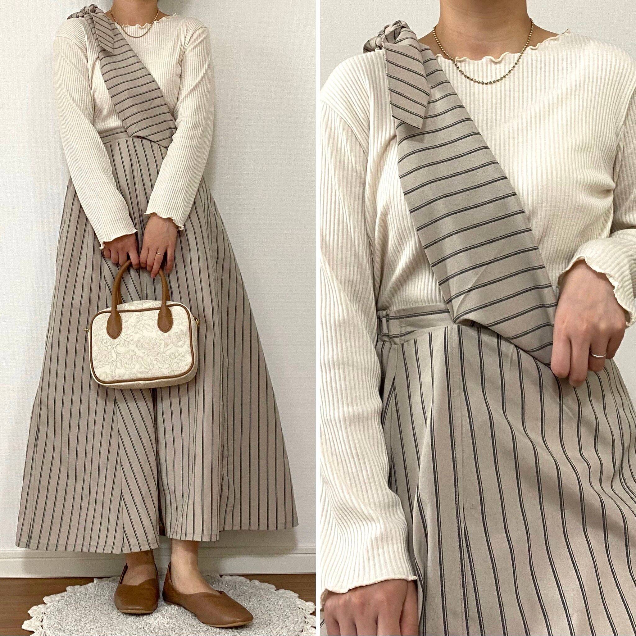 結び方も最初は試行錯誤でしたが慣れれば簡単!着方次第でワンピース風にもハイウエストスカート風にもなる、お得感抜群の一着です。