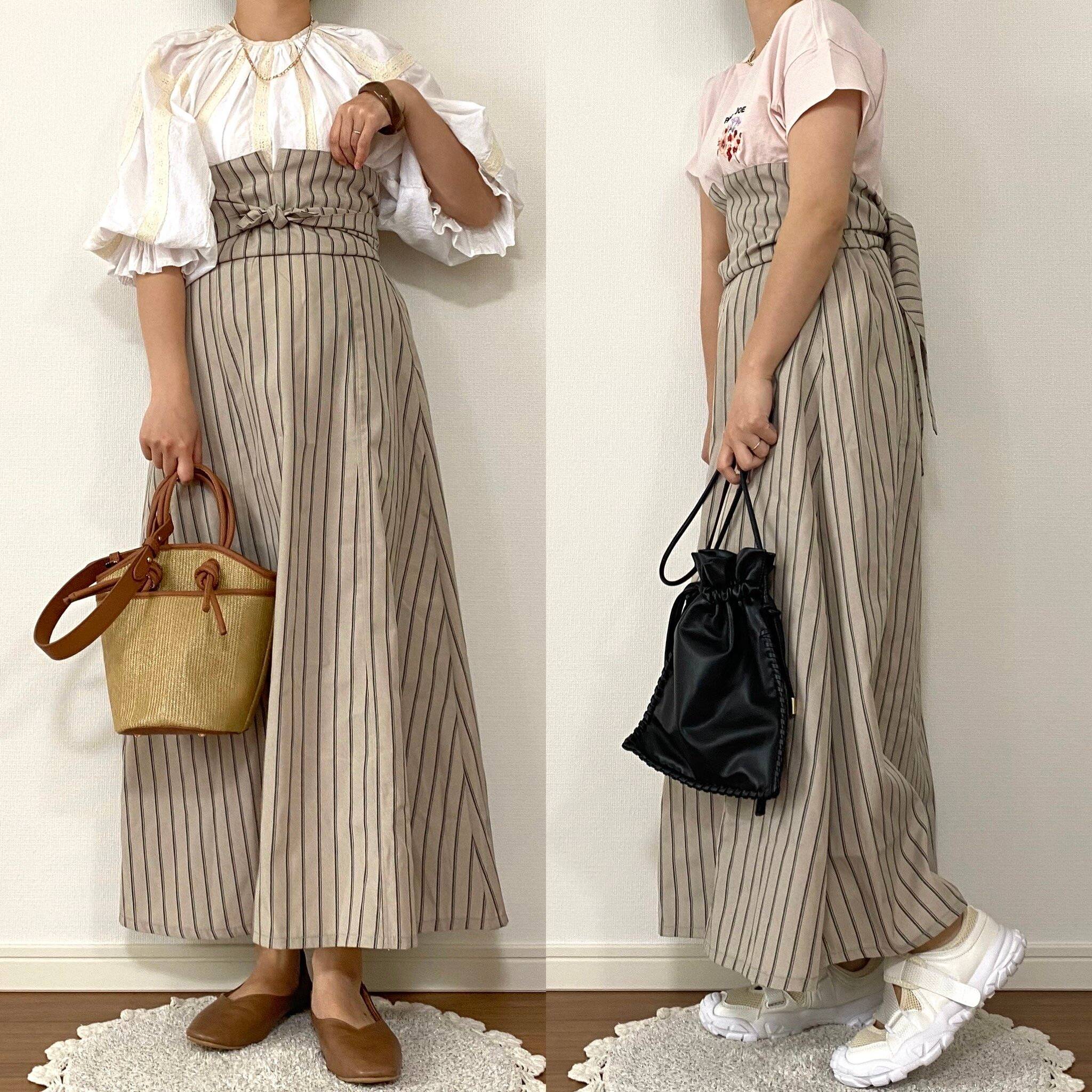 ハイウエストスカートなら脚長効果も期待できます。結び方で簡単に雰囲気を変えることができるのも魅力的。