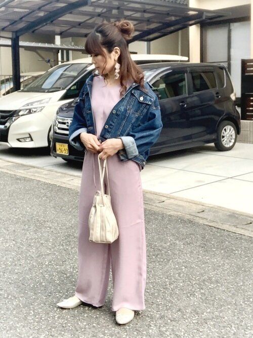 大人女性の強い味方、くすみカラーの淡い色合いに、デニムの色はよく映えます。女性らしいかわいさを取り入れつつ、カジュアルに仕上げるのにもってこいです。