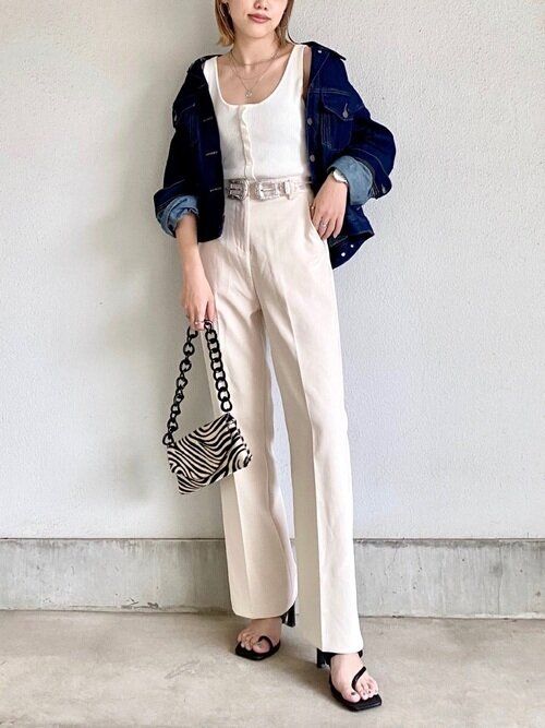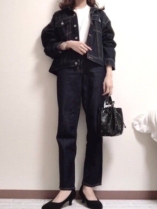 難易度高めと思われがちなデニムオンデニムですが、最近のワントーンコーデの流れからハードルが下がってきています。全体の面積が多いので濃色系でまとめるのが◎。