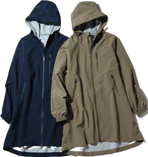 シンプルで合わせやすい高撥水のコート。上下両方から開閉できるダブルファスナーで、さま