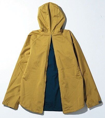 背中のファスナーを開くと、中にリュックを背負える。フードのつばが形状記憶で形くずれしづらく、視界を遮らない。